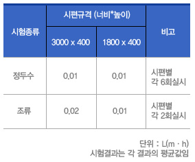 누수성능 : 누수율은 40L/(mㆍh)를 초과해서는 안된다.
